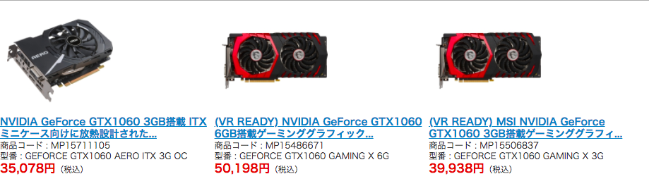 - GTX1060の6GBモデルが軒並み4万円越え=パーツの単体購入で損する可能性も