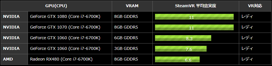 実際、VR Readyを満たす要素というのは以上のような性能であり、これらを満たしておけばどのVRもプレイ可能であるということです。