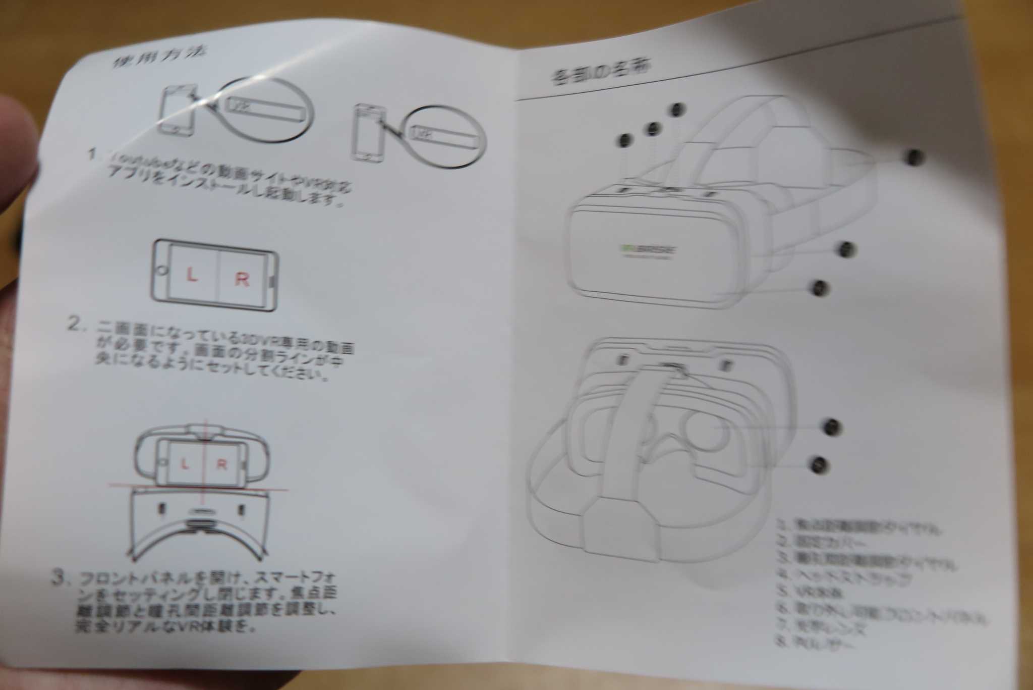 次に書きますが、スマホ用の3DVRゴーグルは使い方が非常に簡単なので、説明書も簡素なのです。