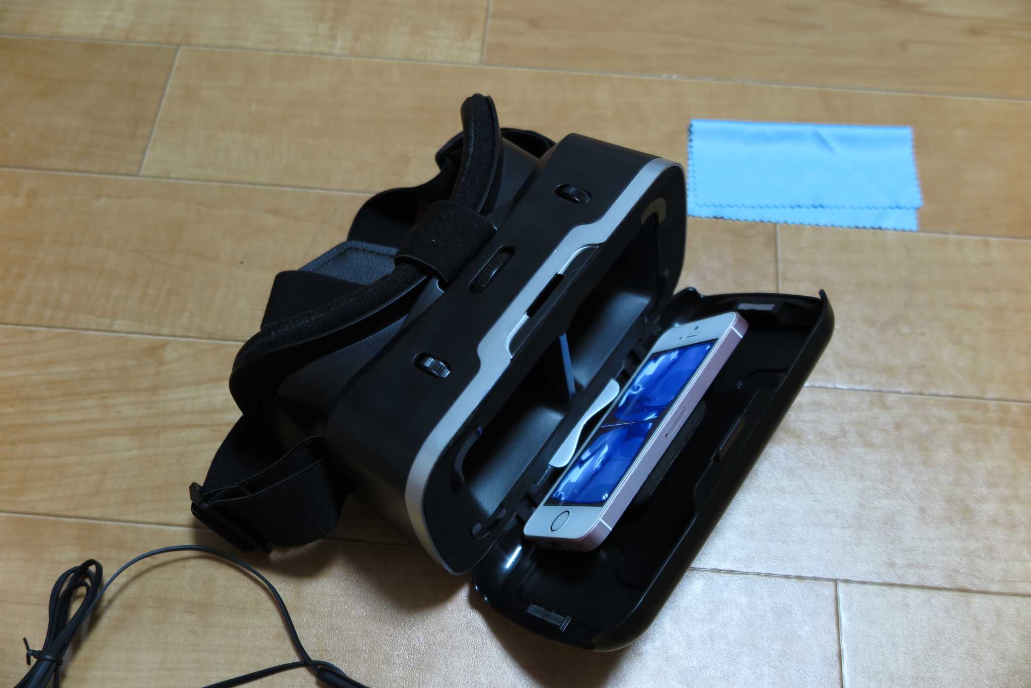 スマートフォンのサイズを気にされてる方も多いとおもいますが、この3DVRゴーグルは僕のiPhoneSEでもきちんと動作してくれました。