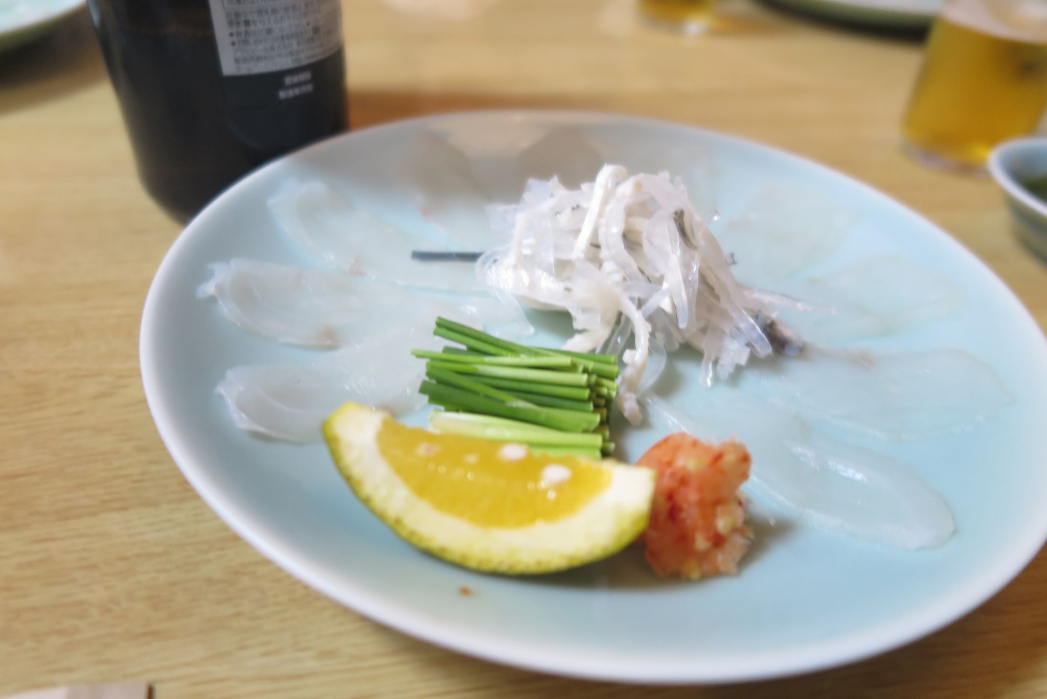 フグの料理って普段食べないんですけど食感が絶妙でした。固すぎず柔らかすぎずでクセになる歯ごたえであっという間に刺身が終わってしまいました。