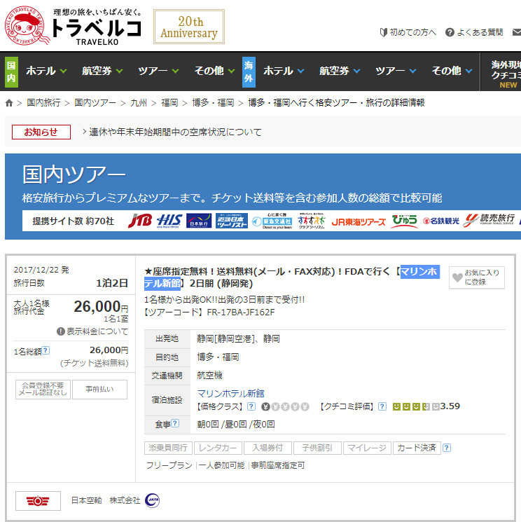福岡から帰ってきて、この記事を書くために改めて「トラベルコ」を確認すると1月はさら5000円食らいやすくなっててびっくりしました。