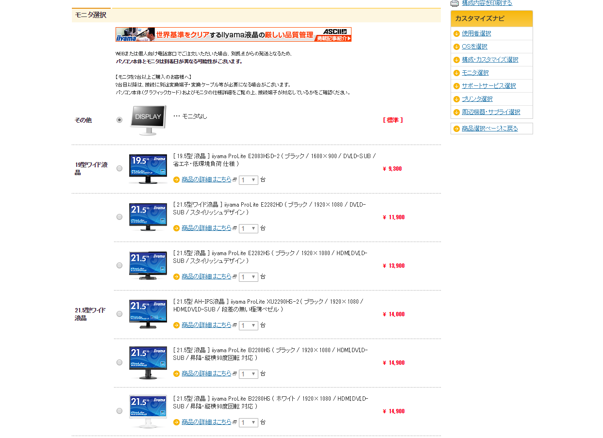 マウスコンピューターは株式会社iiyamaのモニターをオプションで付けることが可能です。
