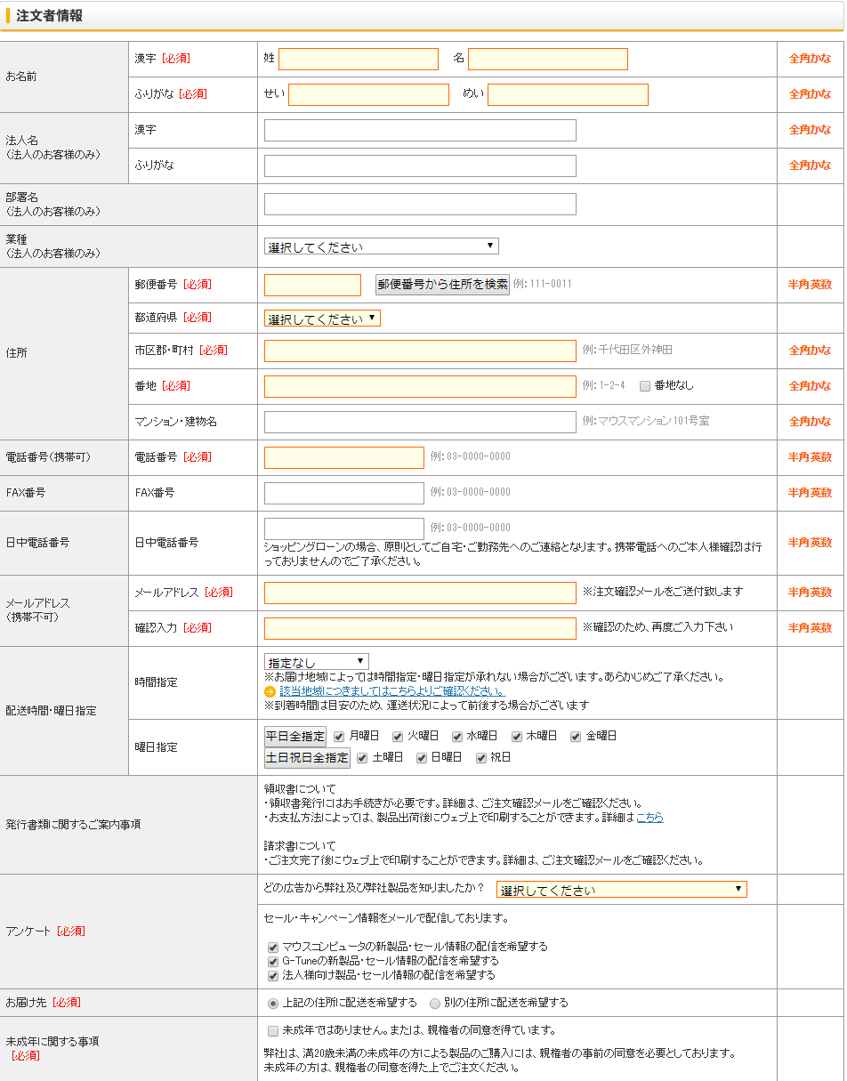 マウスコンピューター銀行振込コンビニ決済について