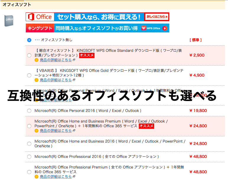 - オフィスソフト選択(選ばなくても可
