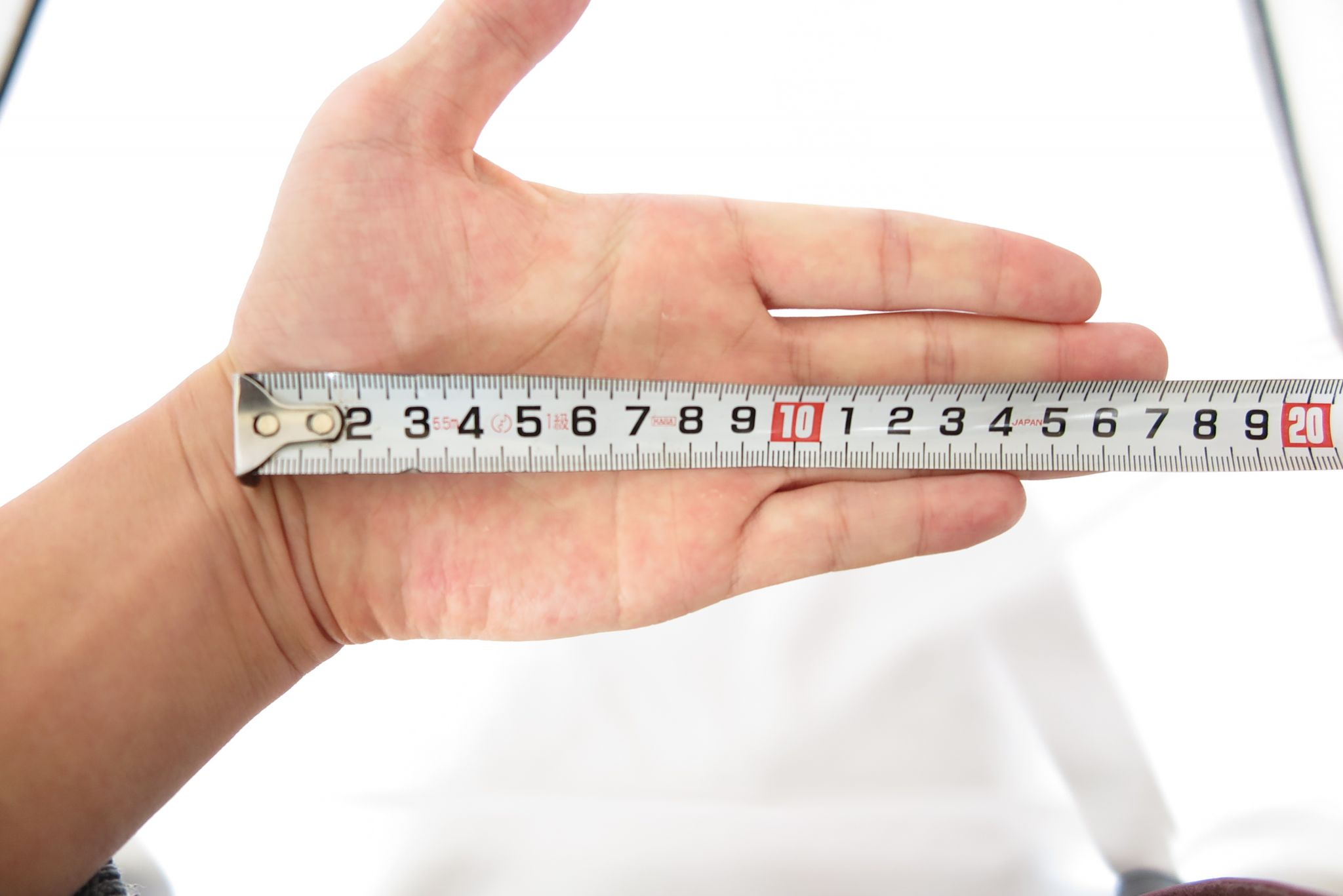 付け根から手のひらまでが約10cm程度であることから、手のひら全体で覆う形になるのはイメージしやすいでしょうか。