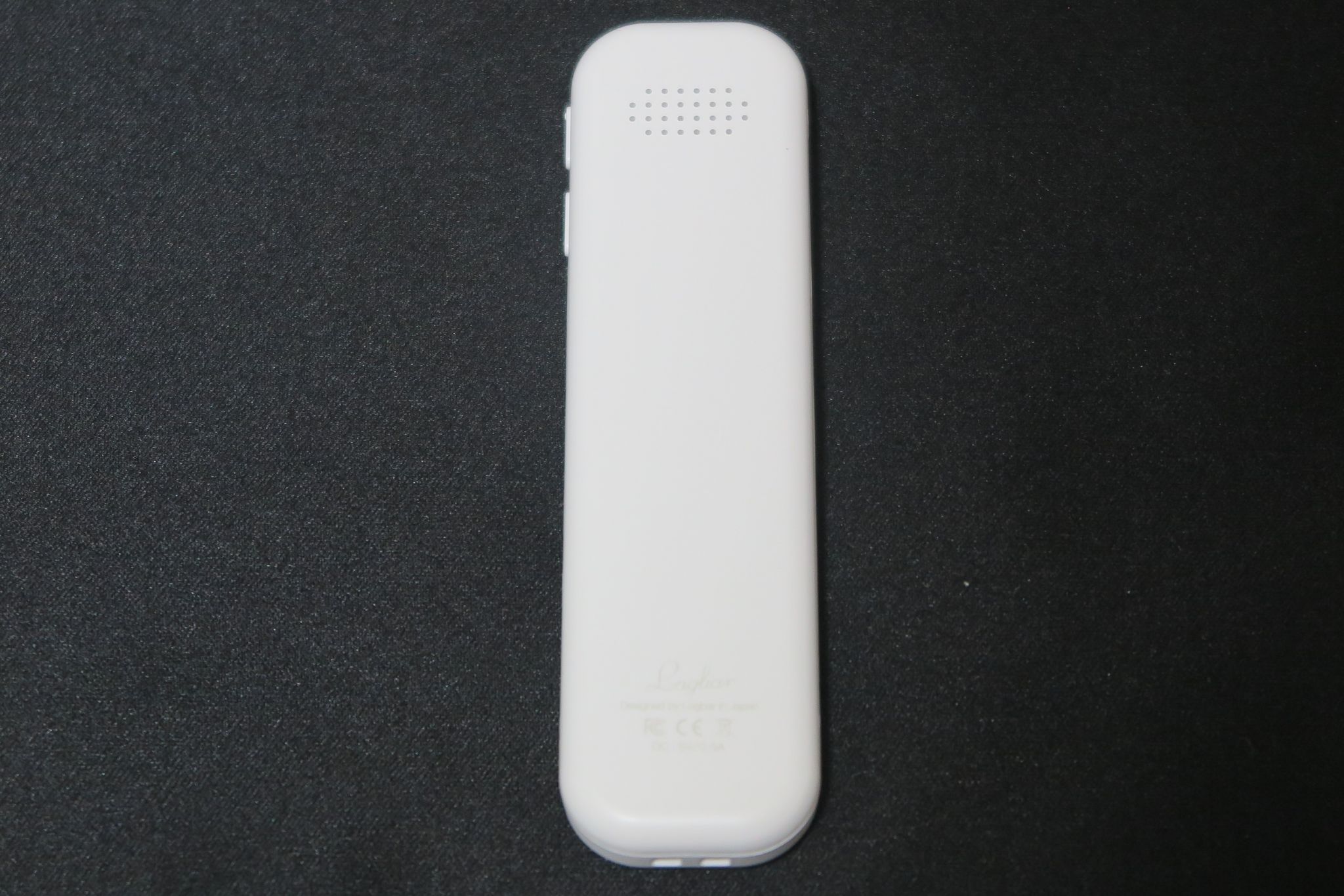 サイドボタンに電源ボタン(右側)と言語切り替え、翻訳語確認ボタン左側となっています。