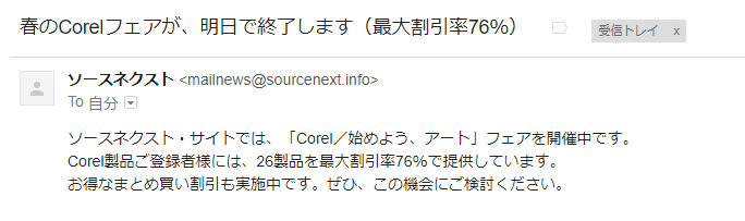 また、ソースネクストでは、会員向けにキャンペーン情報を定期的にメール配信をしています。