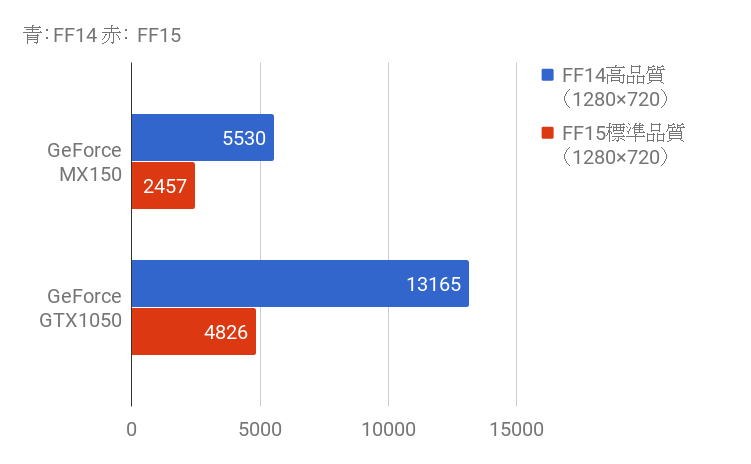 GeForce® GTX 1050(2GB)ファイナルファンタジー14、ファイナルファンタジー15ベンチマーク結果
