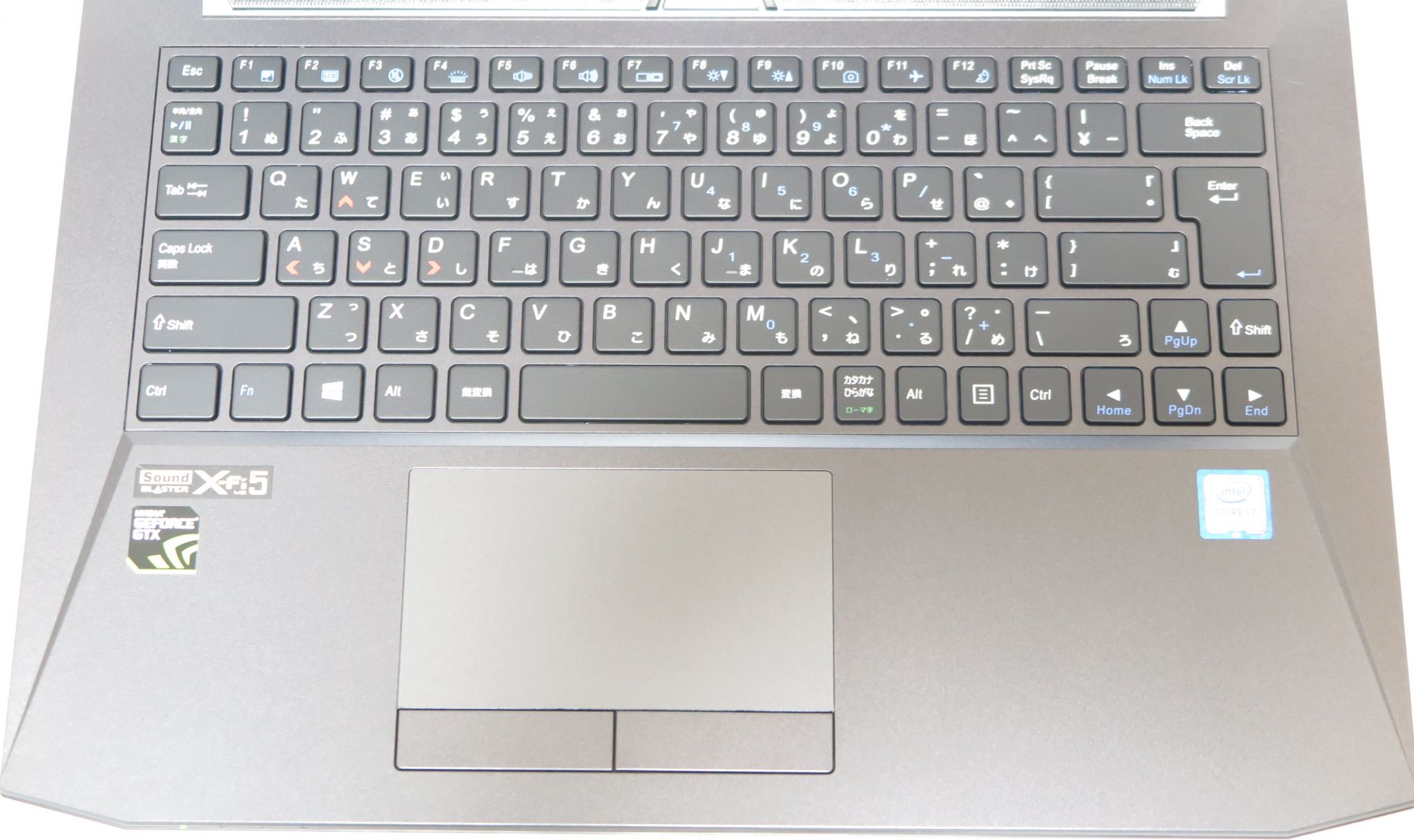 またGe Force GTX1050を搭載していることもあり、ハイグラフィックなゲームもプレイできることからキーボードは「WSAD」のキーに赤く色付けされています。