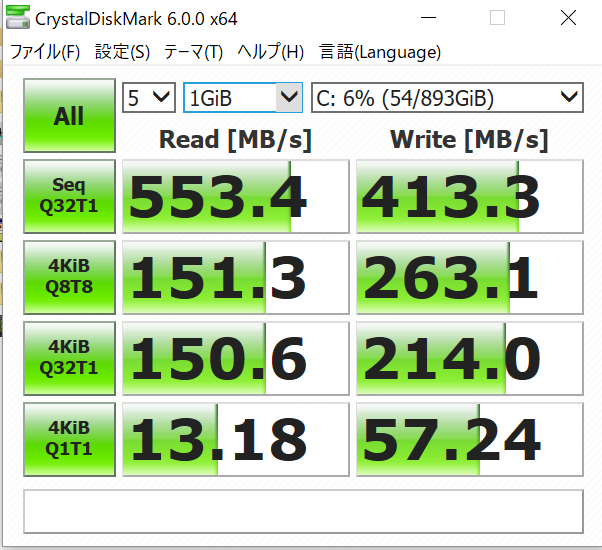Web限定モデルのみ搭載されるSanDisk960GB SSDをCrystaldisk Markでチェック