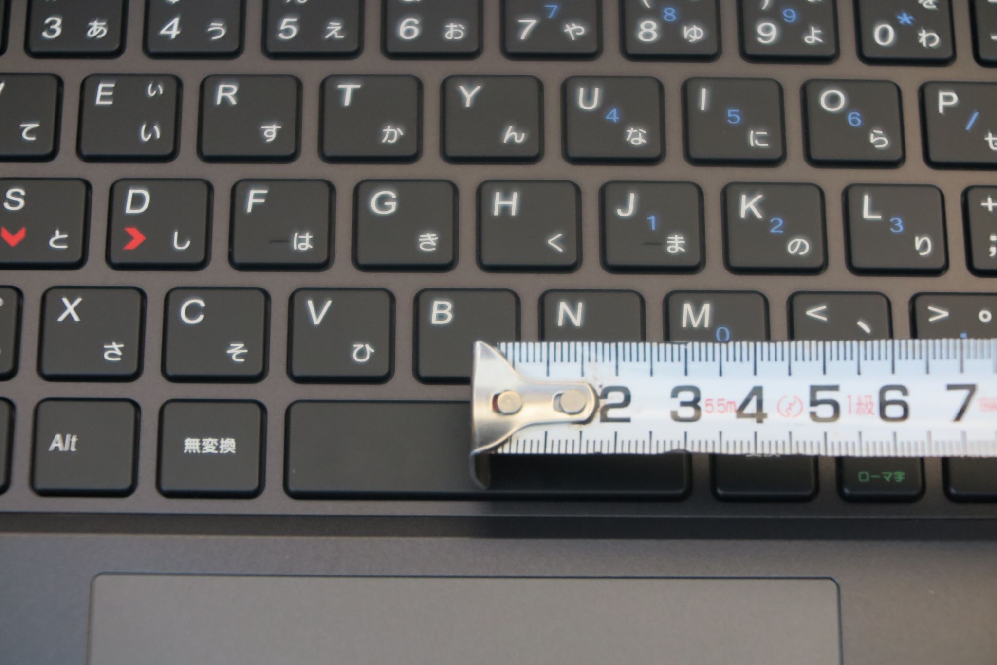 キーとキーと間の感覚も広めにとられており(手動計測では5mm)、個人的にはかなり打ちやすいと感じました。