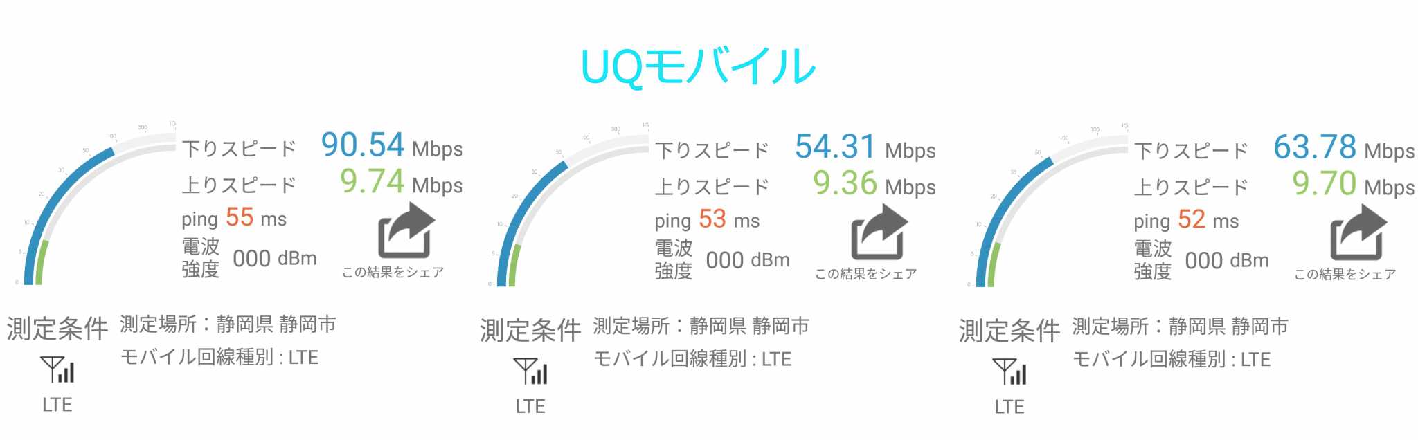 UQモバイルが圧倒的スピードです。(ピーク時はもっと差が開きます)