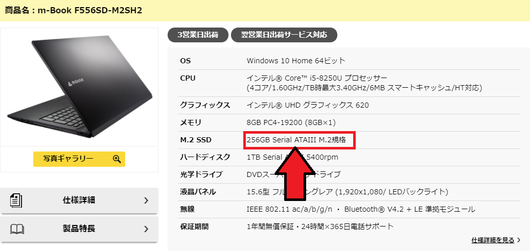 15.6インチのm-Book F556SD-M2SH2に搭載されているSSD『256GB Serial ATAⅢ M.2規格 』はhynix 256GB