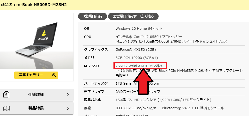 マウスシリーズのノートパソコンに搭載されてるSSDまとめ