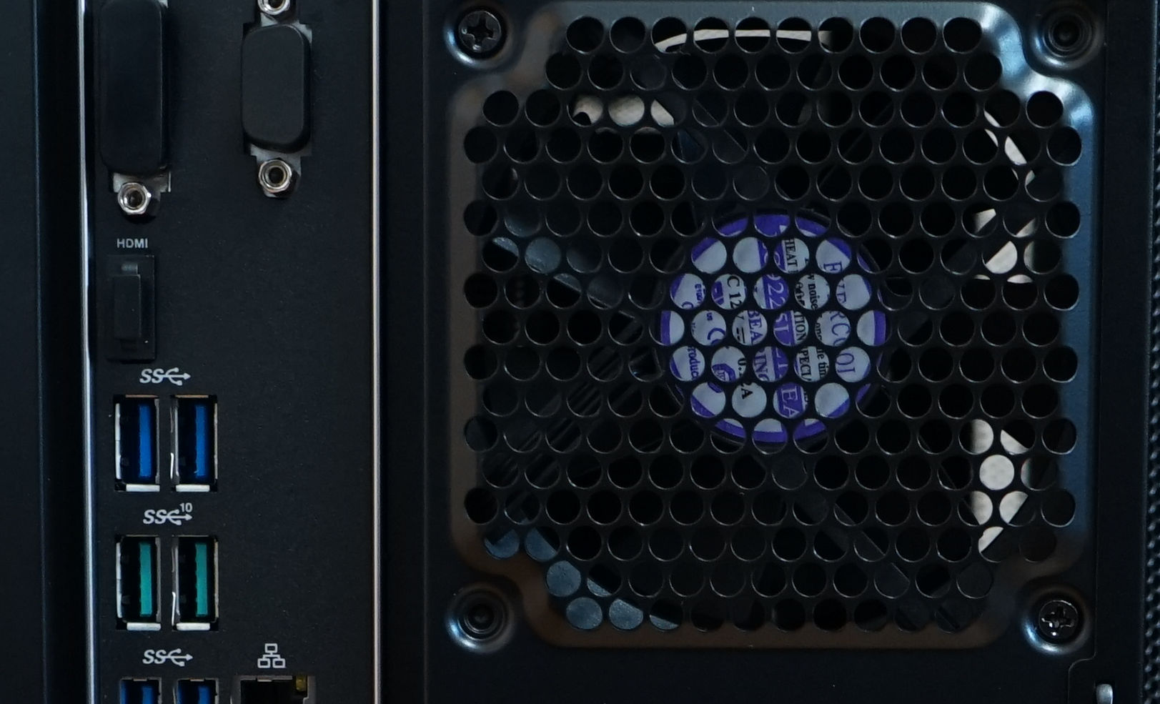 一見すると他のメーカーの販売しているデスクトップと同じように感じるかもしれませんが、こうした冷却性能に特化したつくりは非常に好感が持てます。(ファンの回転音も駄々洩れですが)