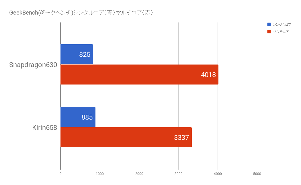 シングルコアではP10Liteに搭載されるKirin658が有利ですが、マルチコアではSnapdragonが有利。