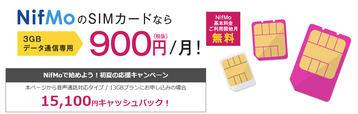 niftyの格安スマホ部門Nifmoでは現在キャッシュバックキャンペーンを利用中です。