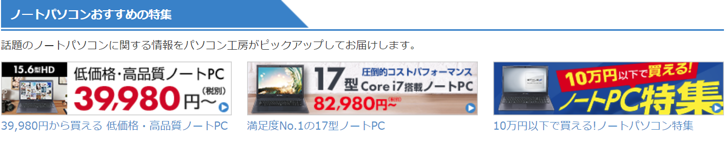 こちらの記事でパソコン工房さんのを使ってみる気になりました!
