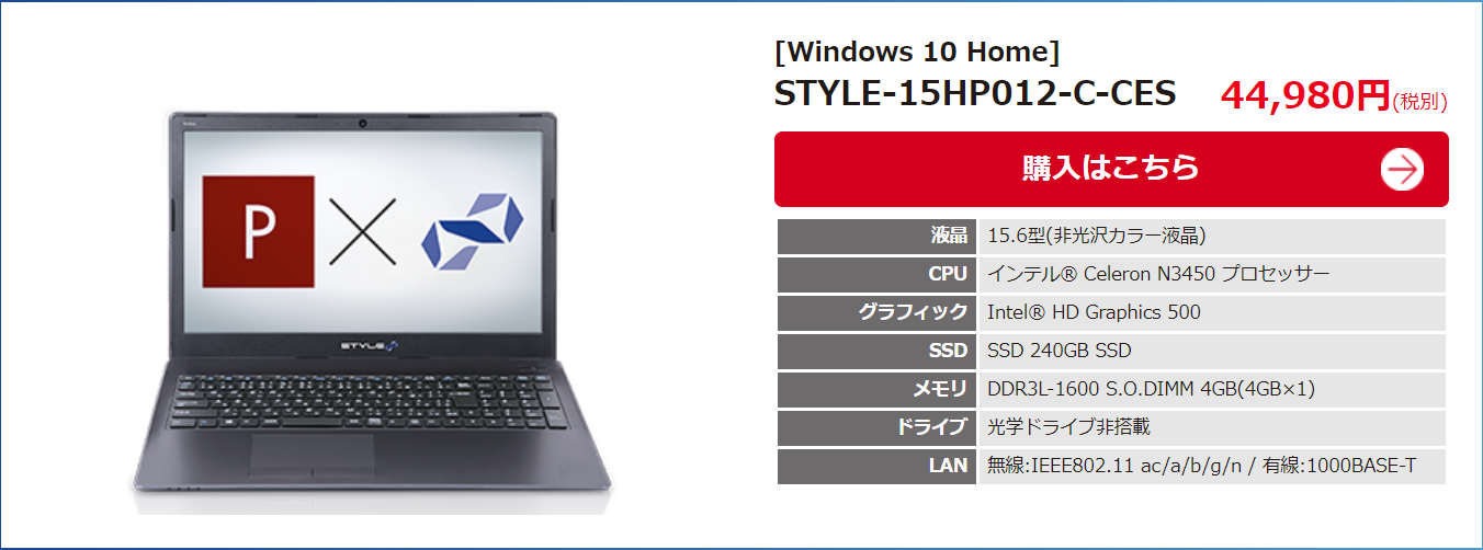 STYLEノートパソコンは価格重視の作りとなっておりどうやってコストを下げているかといえば、