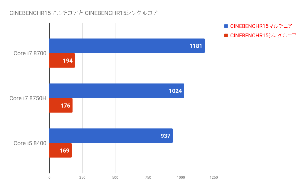 この結果に僕は驚いたのですがデスクトップ版CPUのCore i5 8400以上のパフォーマンスです。