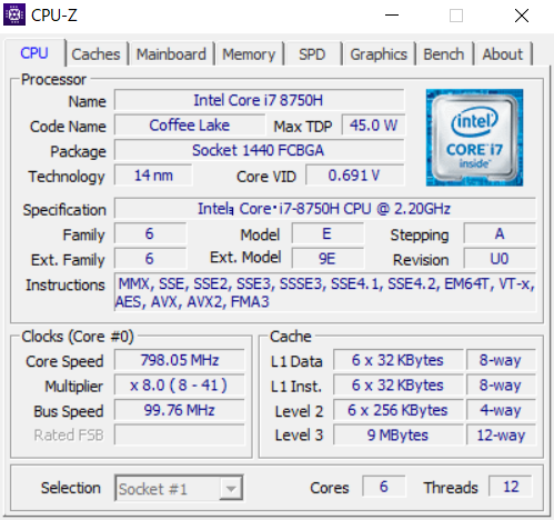 | CPU | インテル® Core™ i7-8750H プロセッサー |
