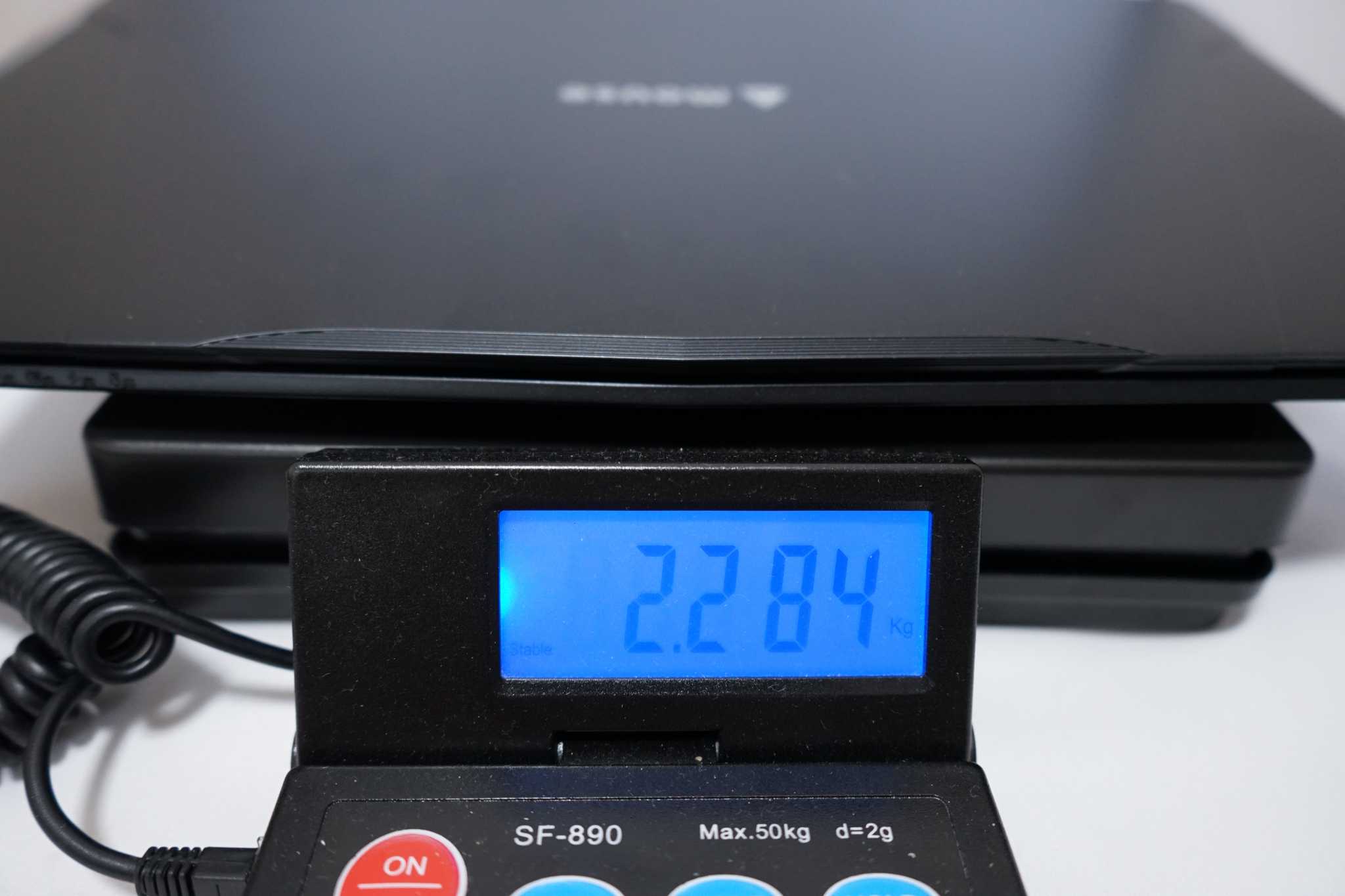 本体重量はバッテリー込で2.284kg。メーカー公称値の2.4kgよりも100g以上軽かったです。
