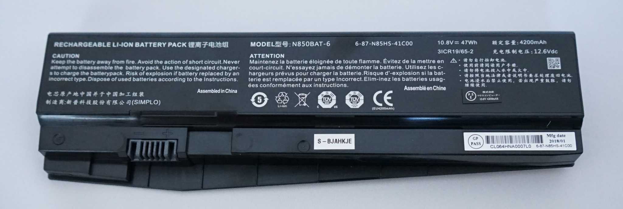 4200mAhの大容量バッテリーでした。マウスコンピューターの公称値では実駆動時間6時間越えとのことです。