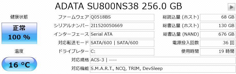 | SSD | 256GB (M.2規格/Serial ATAIII 接続) |