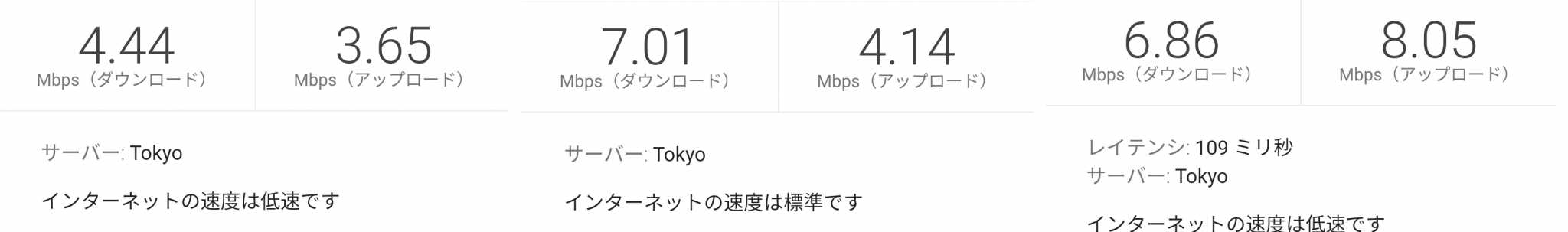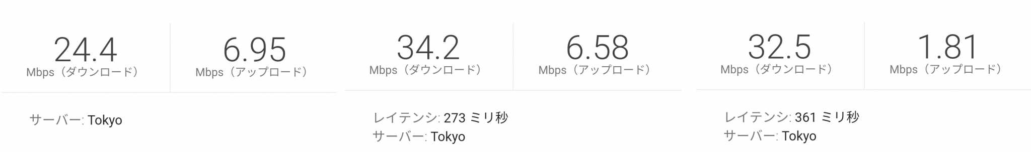 | 12時~13時までのピーク時間のGoogleスピードテストの結果 | ||||