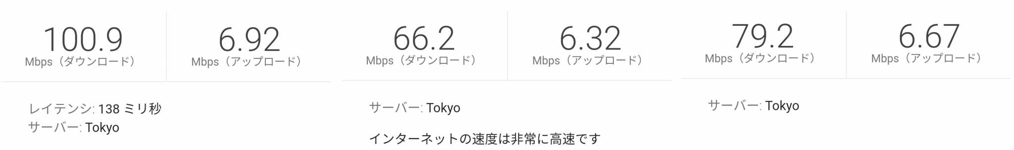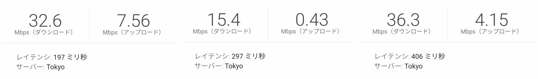 | 13時~17時までの安定した時間のGoogleスピードテストの結果 | ||||