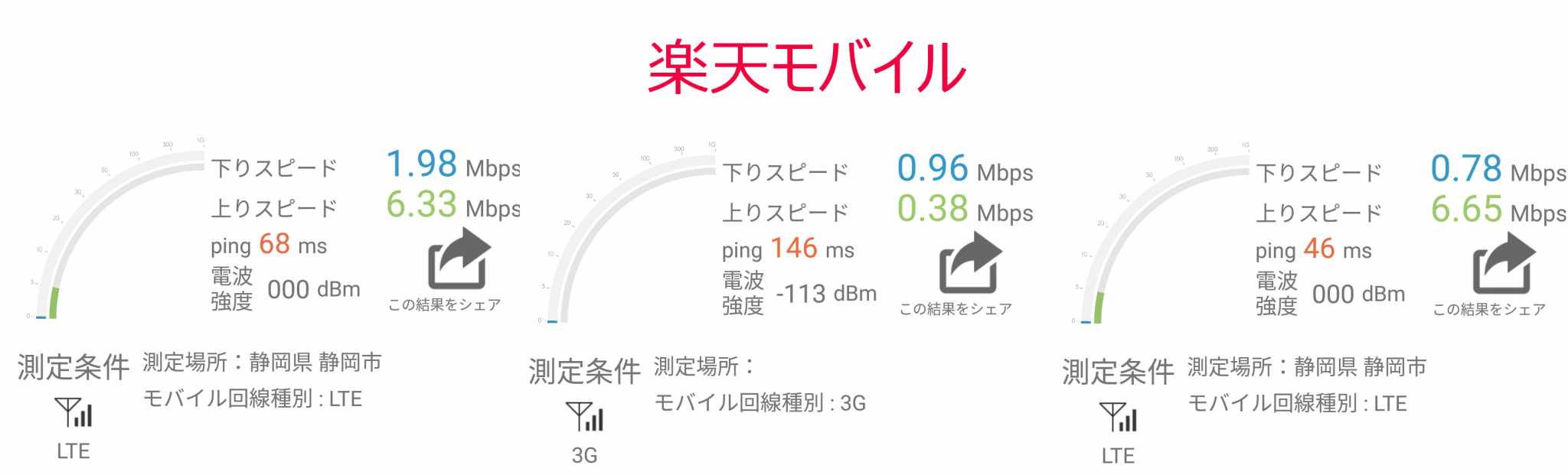 再度記載しますがこれはピーク時ではなく、混雑していない時間帯での速度ですので混雑時の楽天モバイルは全く使い物になりません。