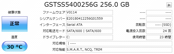 | SSD | 256GB (M.2規格/Serial ATAIII 接続) |