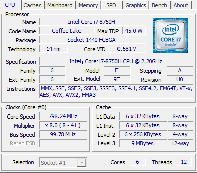 | CPU | インテル® Core™ i7-8750H プロセッサー |