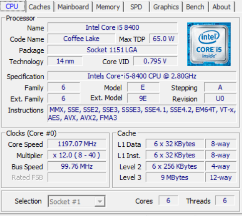 | CPU | インテル® Core™ i5-8400 プロセッサー |