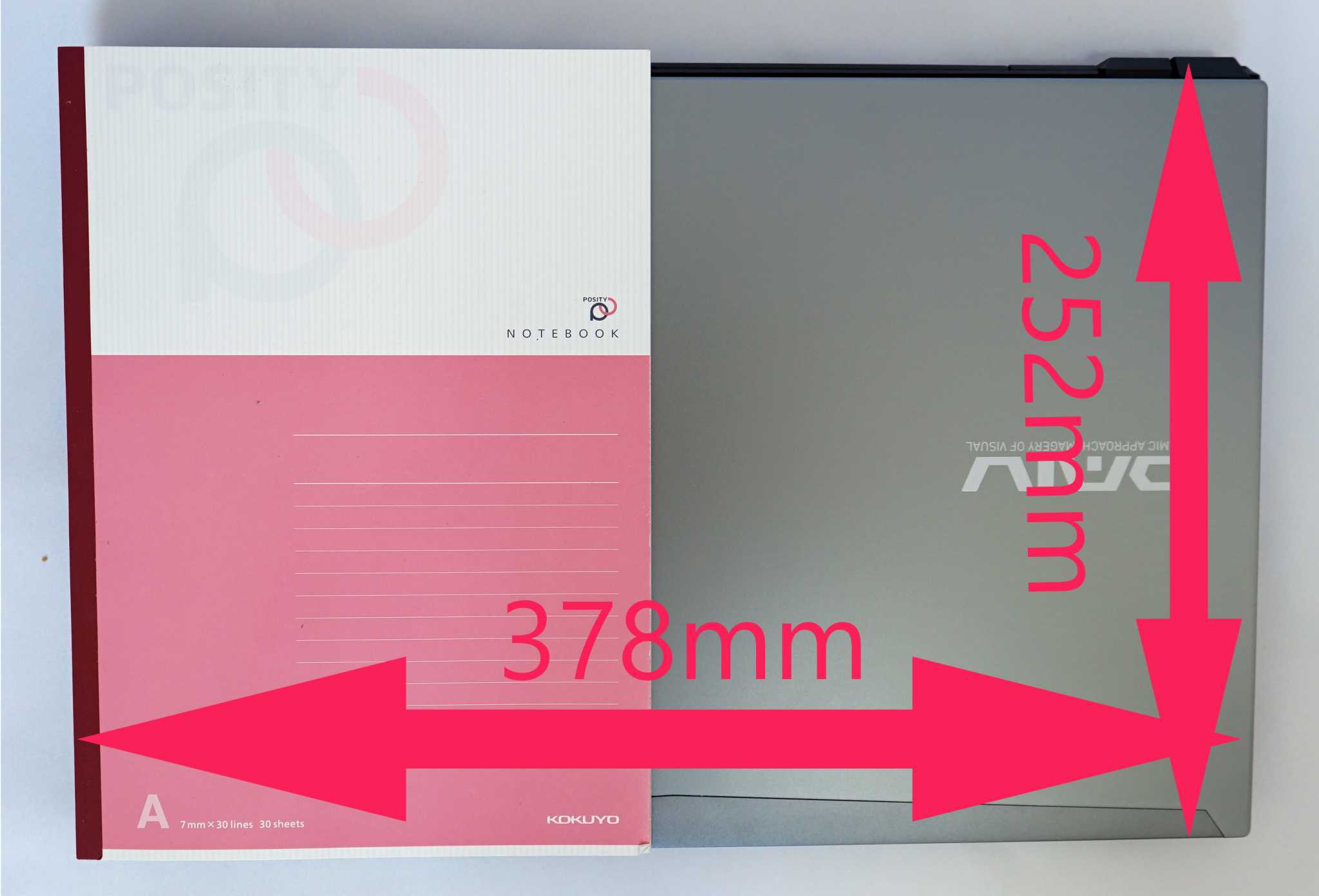 また、本体サイズはA4ノート二枚分(A3ノート1枚分)のサイズを実現しており、一見するととてもコンパクトな印象を受けます。