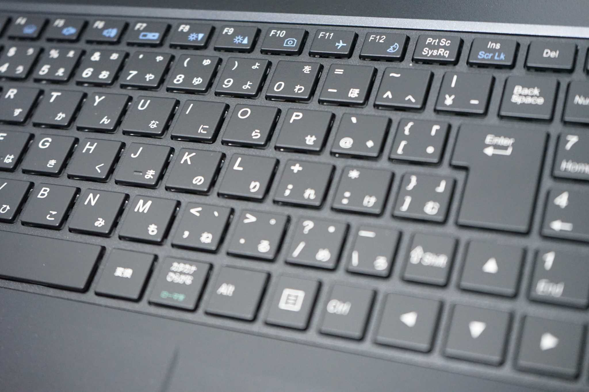 公称値ではキーストローク(キーの沈み込み)1.8mm、キーピッチ(キーとキーの間)は18mmとノートパソコンの理想的な数値はキーストローク2.0mm、キーピッチ19mmといわれていますが、不思議と打ちやすかったです。