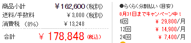 | メモリ32GB SSD512GB HDD2TB | 184,800円 |