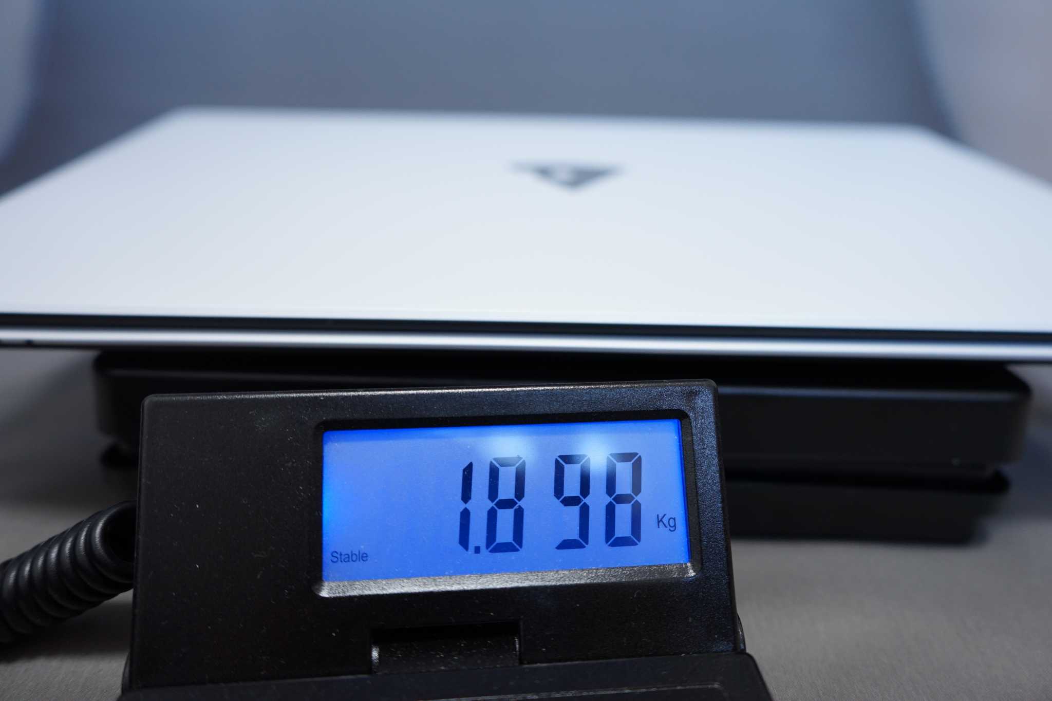 メーカー公称値では、2.1kgとなっていましたが、実測値ではバッテリー搭載時で1.898kgでした。ACと合わせて2.1kgでした。メーカーページでは、ケーブル類は含まないと記載がありましたが…