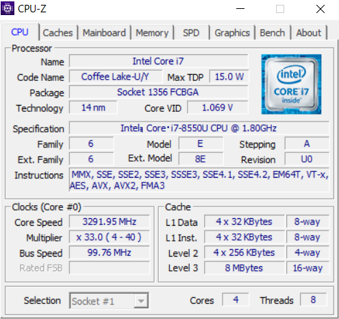 | CPU | インテル® Core™ i7-8550U プロセッサー |