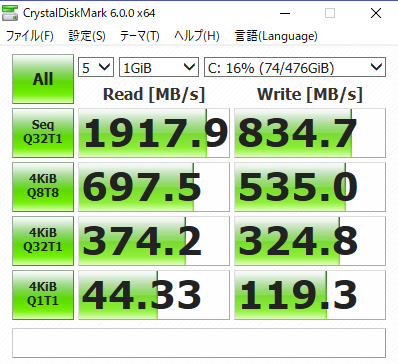 読込速度はとてもはやいのに温度を低く保ててるとヒートシンクの偉大さが伺えます。