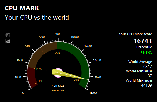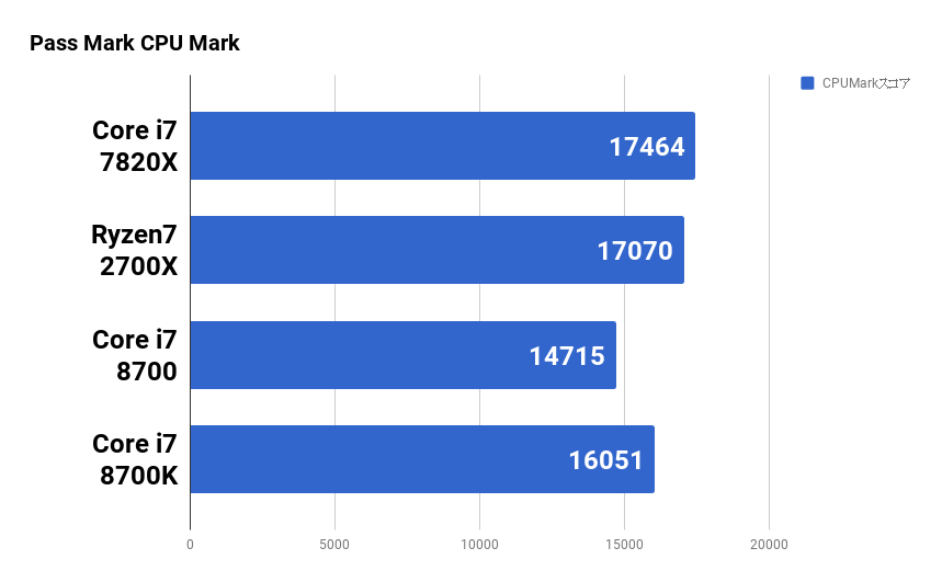 同じくCPUのパフォーマンスをテストするPass Mark CPUMARKでは、以上のような結果になりました。