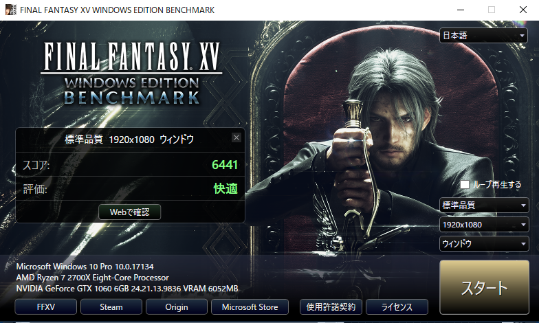 ファイナルファンタジー15のベンチマークはPCゲームにおいて重量級の重たいゲームとして評価されています。GTX1060(6GB)のパワーは、標準品質で”快適”とされています。