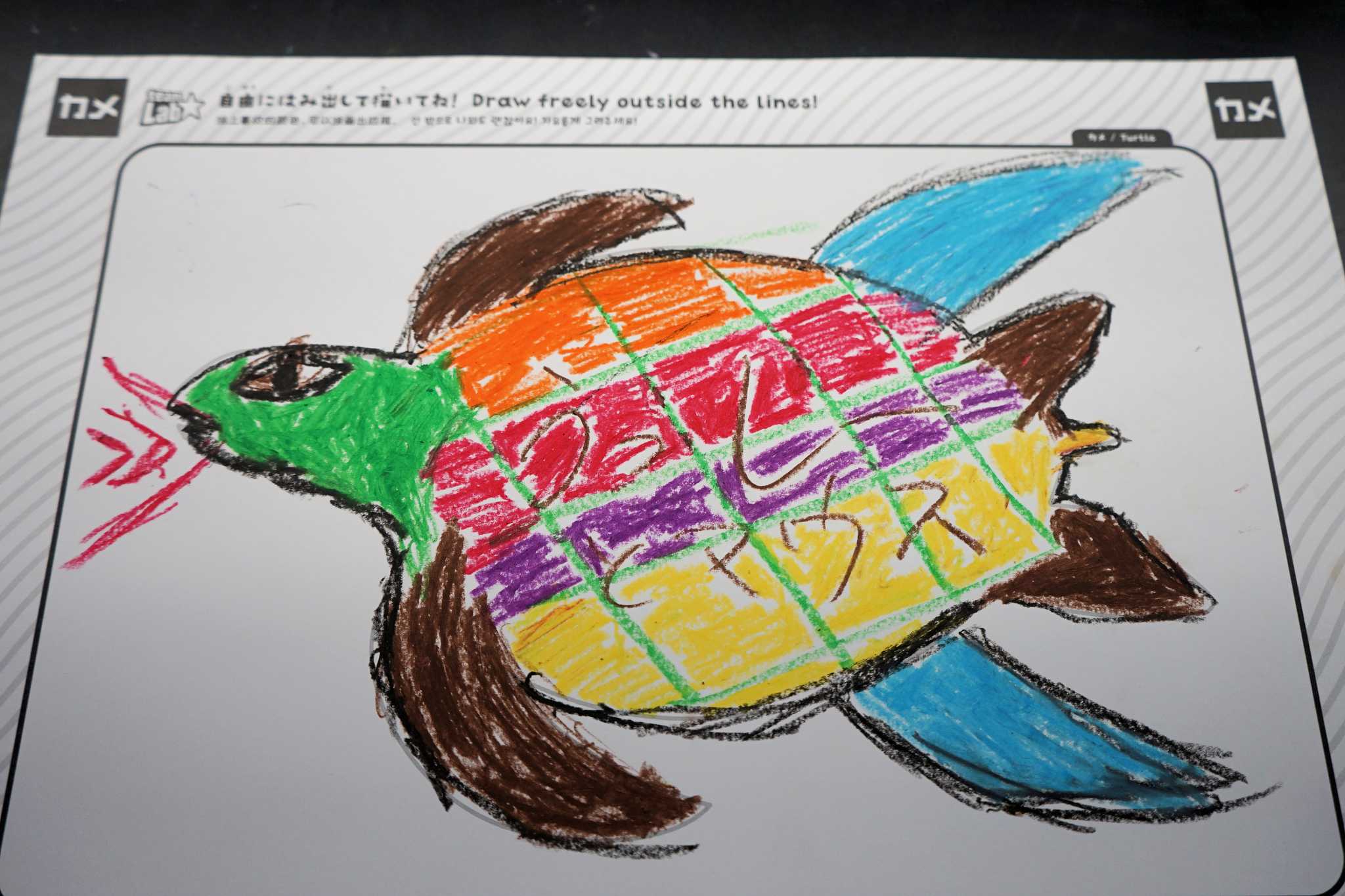 大人の方がガチで『色塗り』をしている様を見て、絵心の全くない僕でも「よっしゃ!画伯の本領発揮しちゃうぞ!!」と美術の通信簿1の僕が頑張った結果がこれです、