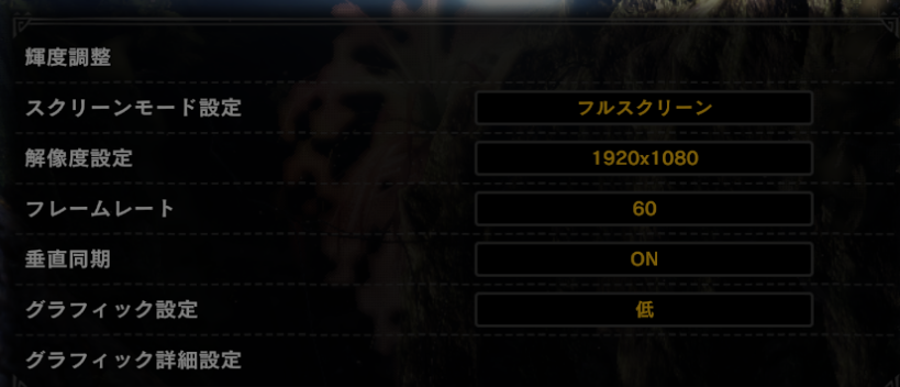 • 外付けモニターの利用はしない⇒FHD(1920×1080)解像度でのプレイ
