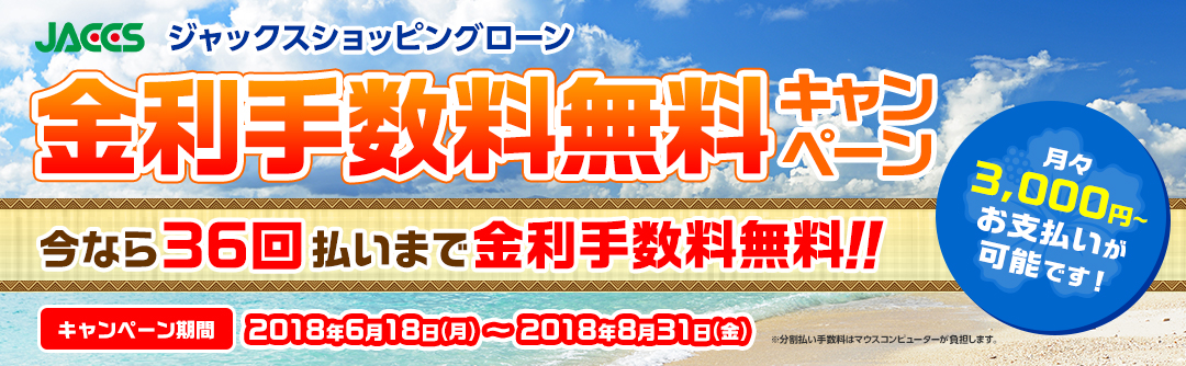こんなビッグチャンスなのにお金がない人でも安心の金利手数料無料キャンペーンを行っています。