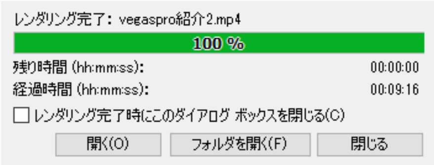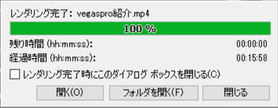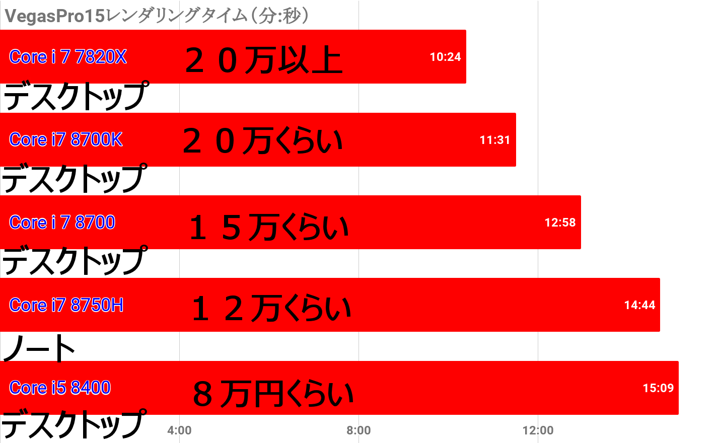 プロ用動画編集ソフト『Vegas Pro15』のインターネット用HD(1920×1080)に編集した動画をレンダリング作業を行い、そのかかった時間をテスト。