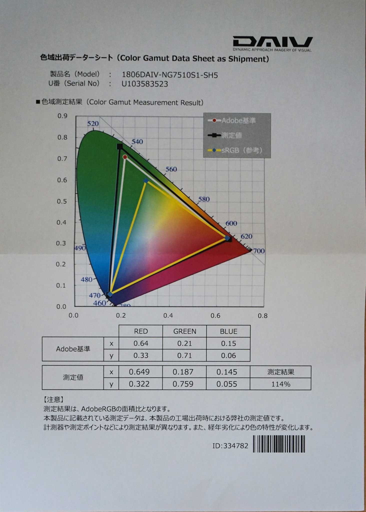 今回のモデルは工場出荷維持で114%とのことAdobeで基準値の色域を完全にカバーしています。