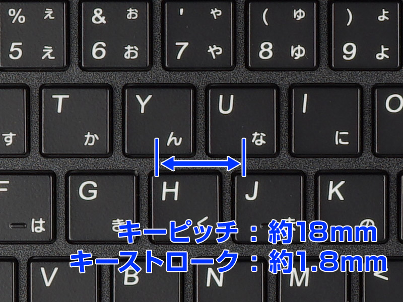 DAIV-NG7510シリーズは、メーカー公称値でキービッチ(キーとキーの距離)が18mm、キーストローク(キーの沈み込み)が1.8mmとノートパソコンの中でも理想的な数値に近づけていること。