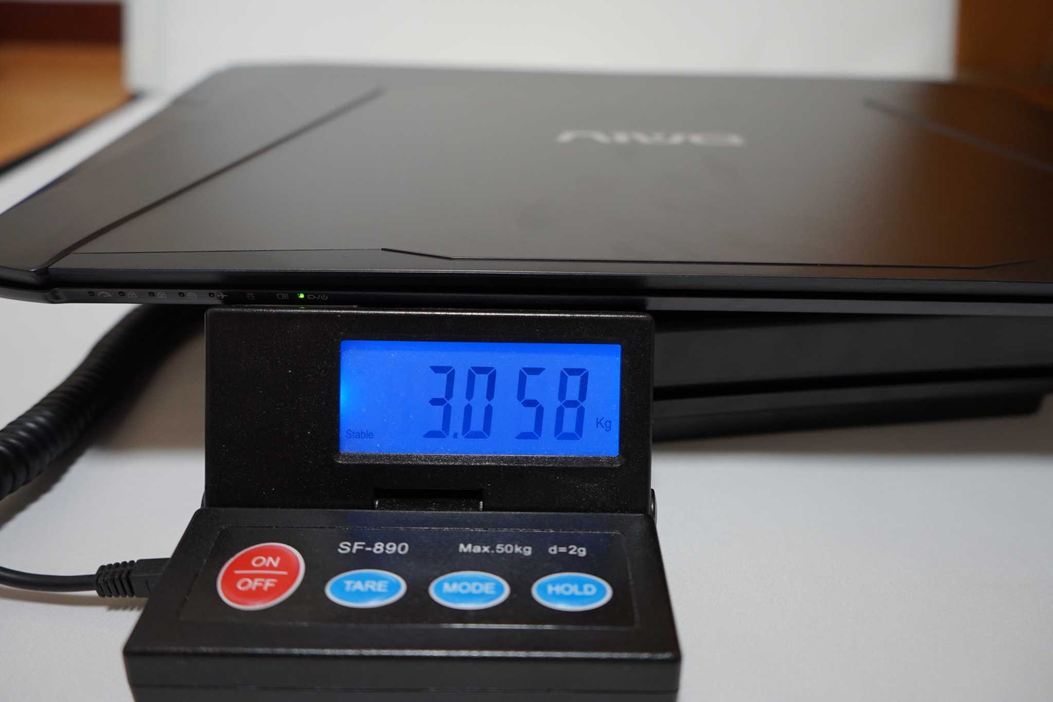 本体重量は実測値で3.058kg、電源が1.082kgと合計で4kgを超えました。